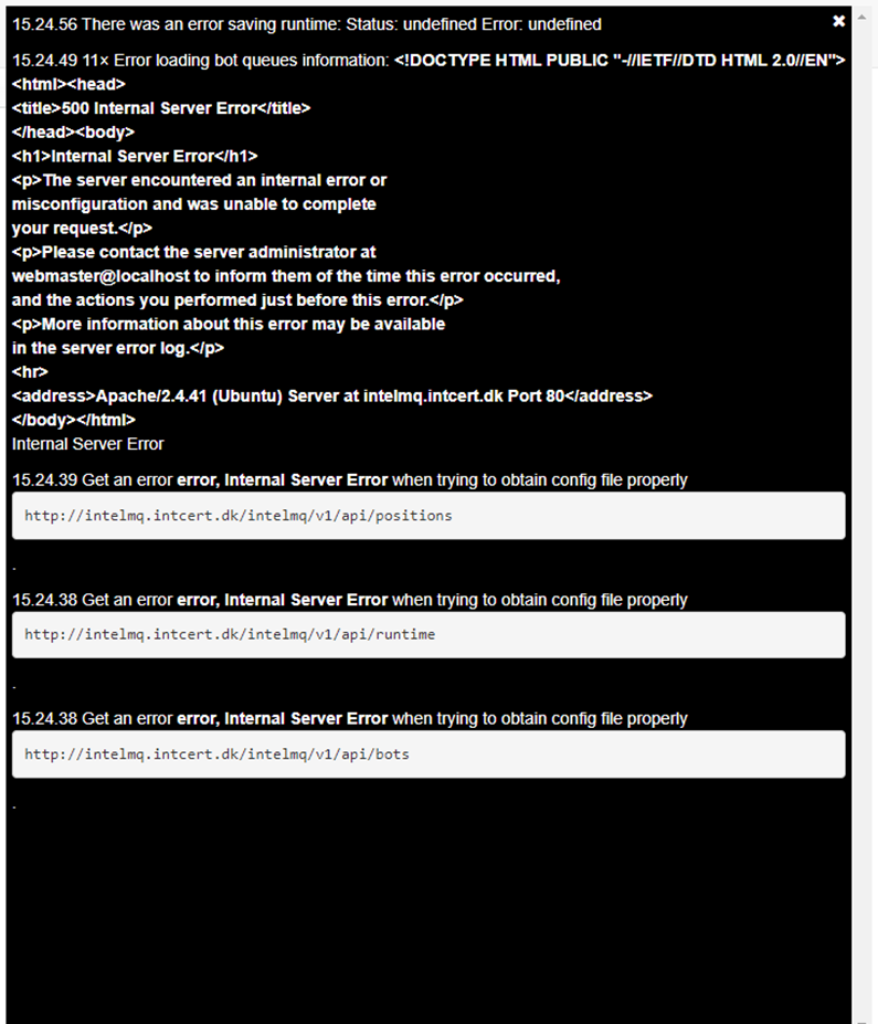 *Fra:* Henrik Jensen *Sendt:* 3. august 2022 15:51 *Til:* intelmq-dev-bounces@lists.cert.at *Emne:* Problems with intelMQ-Manager