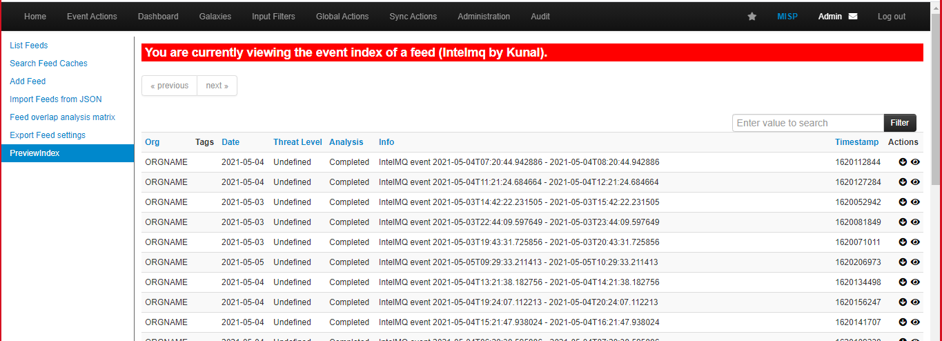 Does that answer your question? I have used mispfeed output bot as output to misp but I am not able to see feeds in MISP. Later I have found a expert bot of MISP. Please guide me how that can be used.